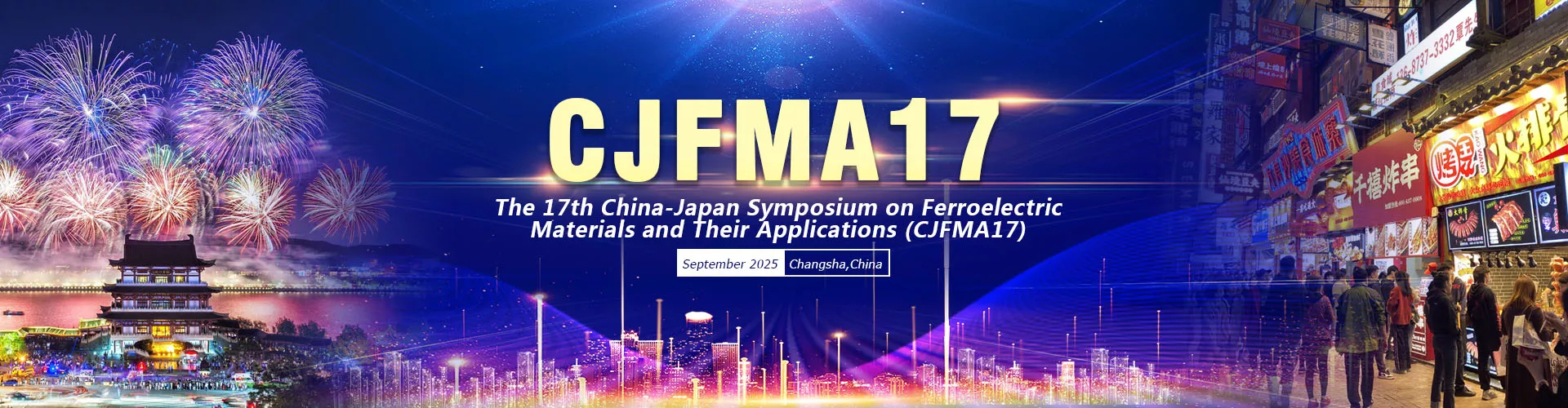We are pleased to announce that the 17th China-Japan Symposium on Ferroelectric Materials and Their Applications (CJFMA-17), organized by the conference committee and hosted by Central South University, will take place from September 19 to 22, 2025, in Changsha, Hunan Province, China.The conference will be held at Xiaoxiang Huatian Hotel (Furong Middle Road Branch), No. 593 Furong Middle Road, Changsha City, Hunan Province.